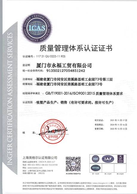 質(zhì)量管理體系認(rèn)證證書