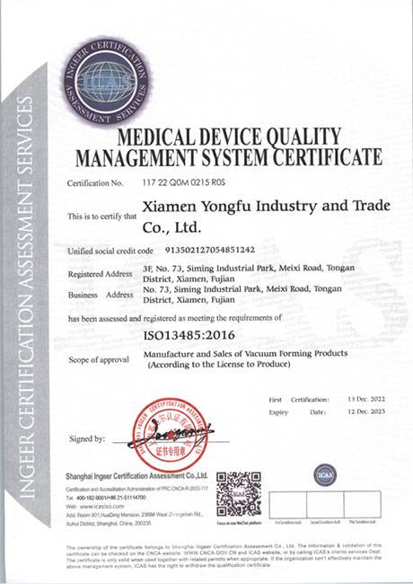 醫(yī)療器械質(zhì)量管理體系認(rèn)證證書